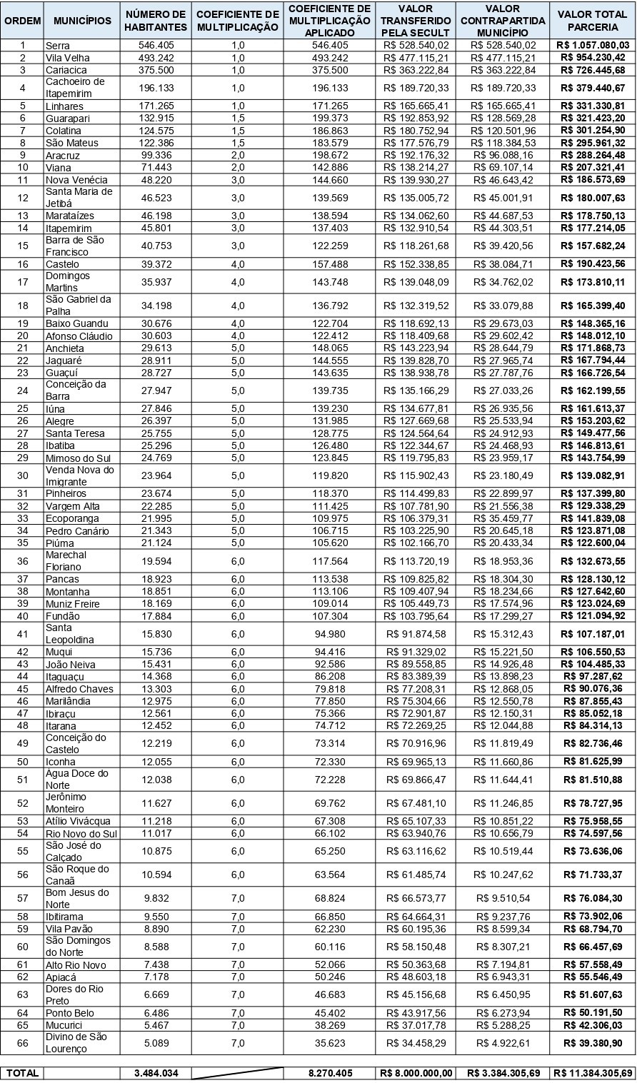 Fundo a Fundo Editais Municipais Ciclo 2025: conheça os municípios capixabas aptos a receber os recursos